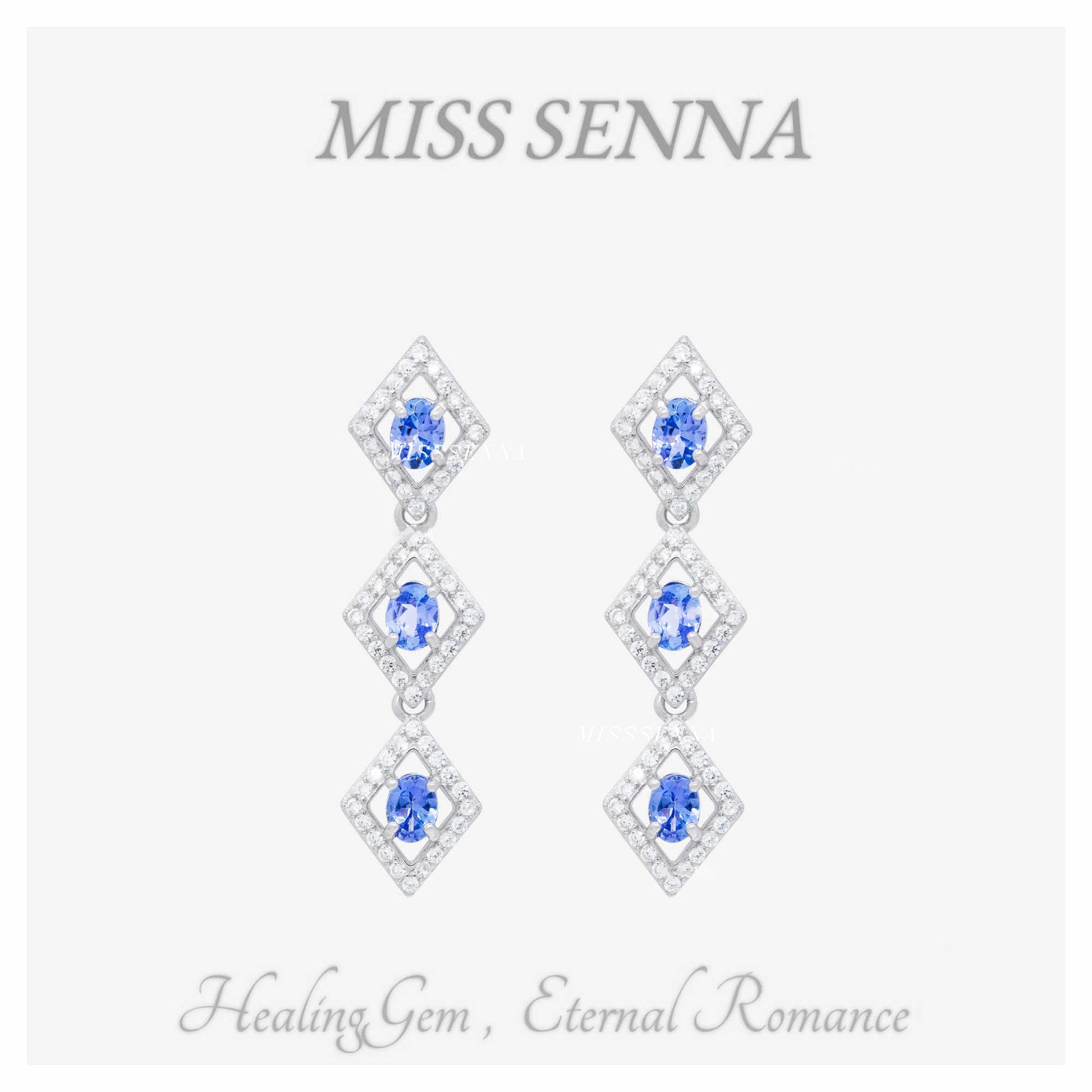 S925 Sterling Silver Natural Tanzanite Diamond-shaped Stud Earrings